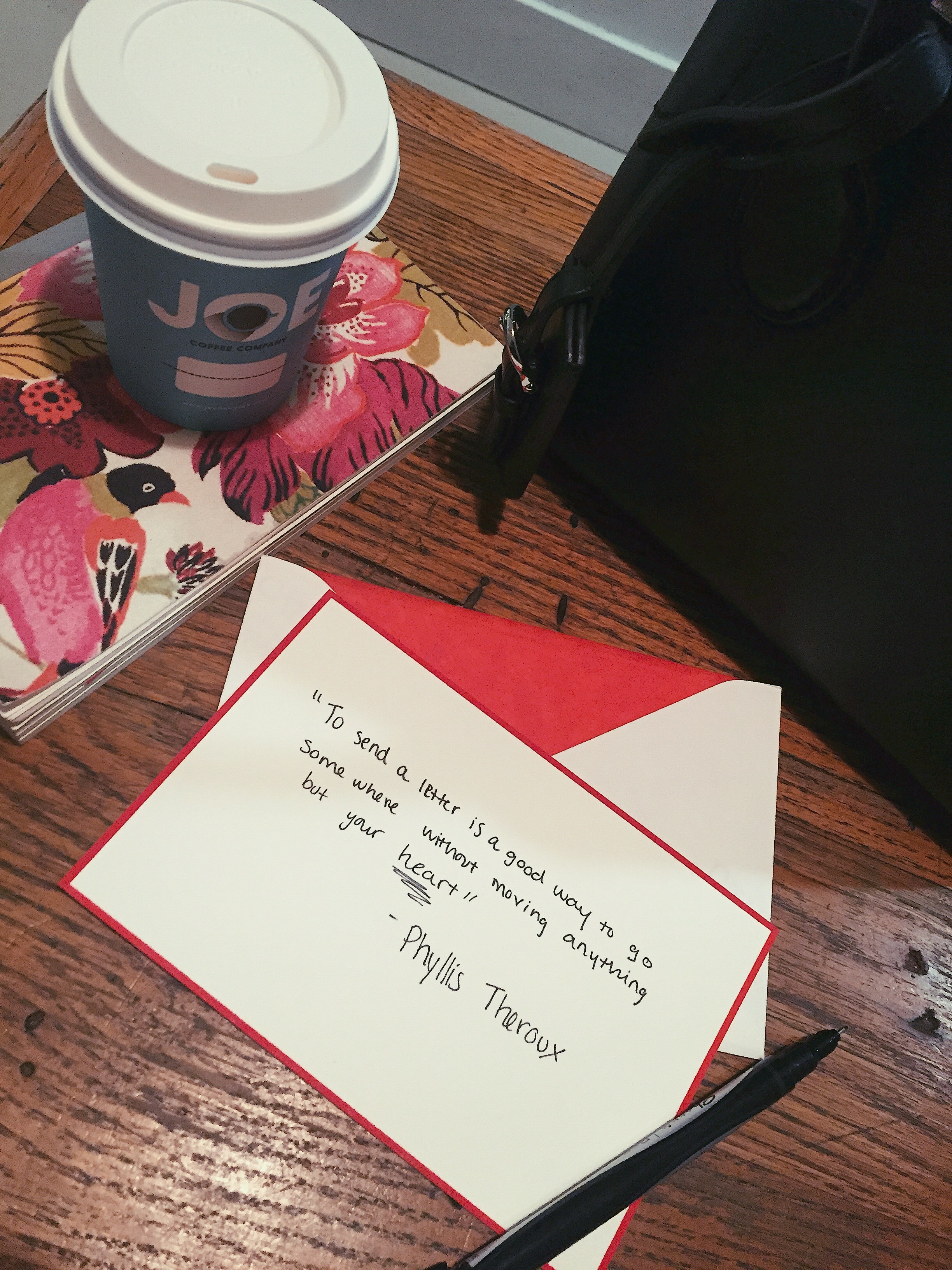 Megan: “To send a letter is a good way to go somewhere without moving anything but your heart.” – Phyllis Theroux