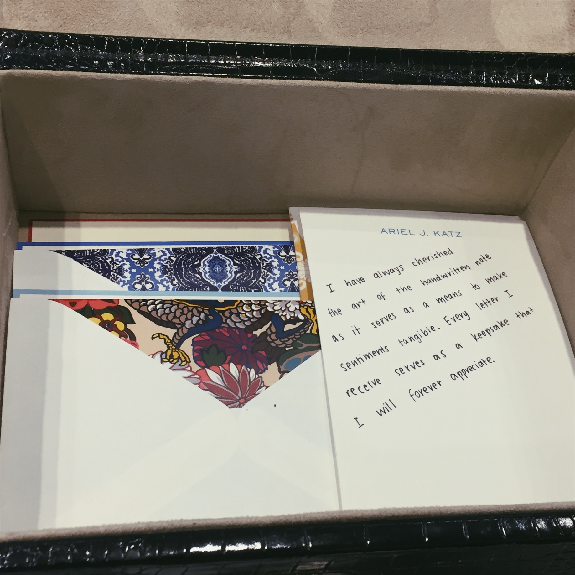 Ariel: I have always cherished the art of the handwritten note as it serves as a means to make sentiments tangible. Every letter I receive serves as a keepsake that I will forever appreciate.